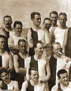 Franklin Delano Roosevelt (top - center) in 1904 group photo with Harvard University graduating class, taken on Nantasket Beach, MA in 1904.